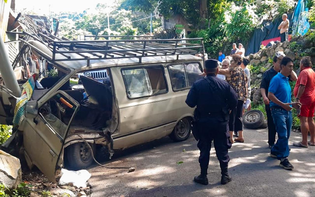 6 personas lesionadas en accidente de tránsito en la calle antigua al Lago de Coatepeque en el cantón La Laguna,…