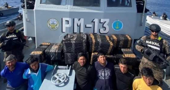 Marina Nacional incauta 750 Kilos de cocaína y detiene a tres ecuatorianos en estero de Jaltepeque, El Salvador.