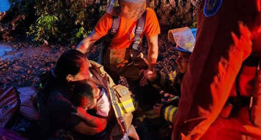 Bomberos rescatan a madre e hijo atrapados por la crecida del río Tamulasco en Chalatenango