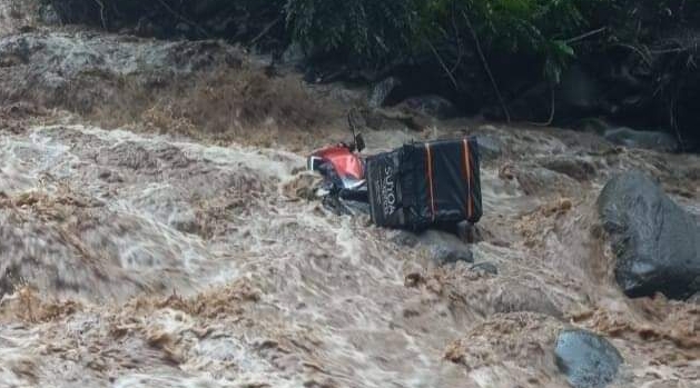 Motociclista es rescatado tras ser arrastrado por la crecida del río El Jute en Santiago Nonualco